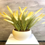Beton Görünümlü Lüks Krem Saksı Sarı Sazlık Aranjman