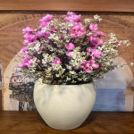 Beton Görünümlü Saksı Pembe Manolya ve Beyaz Nergis Aranjman