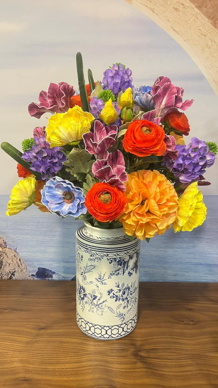 Blue Blanc Vazo Karışık Renkli Çiçek Aranjman