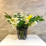 Siyah Cam Vazoda Papatya Ve Mimoza Aranjmanı