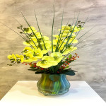 Küçük Cam Vazoda Sarı Orkide Aranjmanı