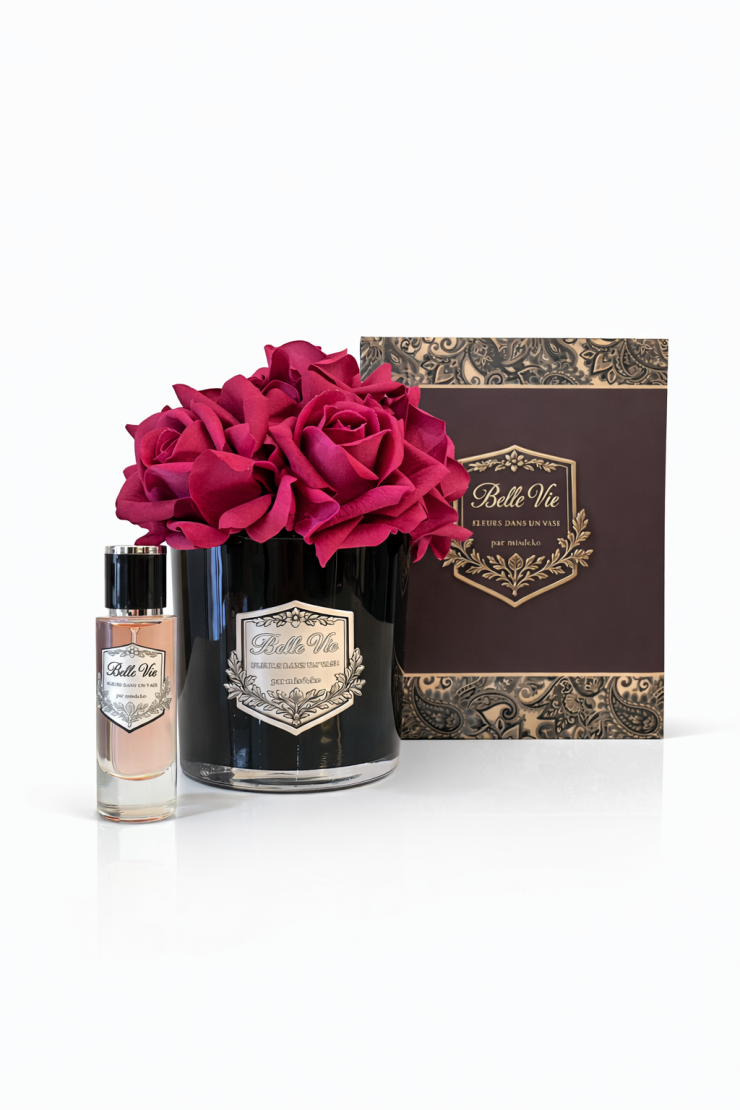 Siyah Cam 5'li Luxury Bordo Gül Oda Parfümü