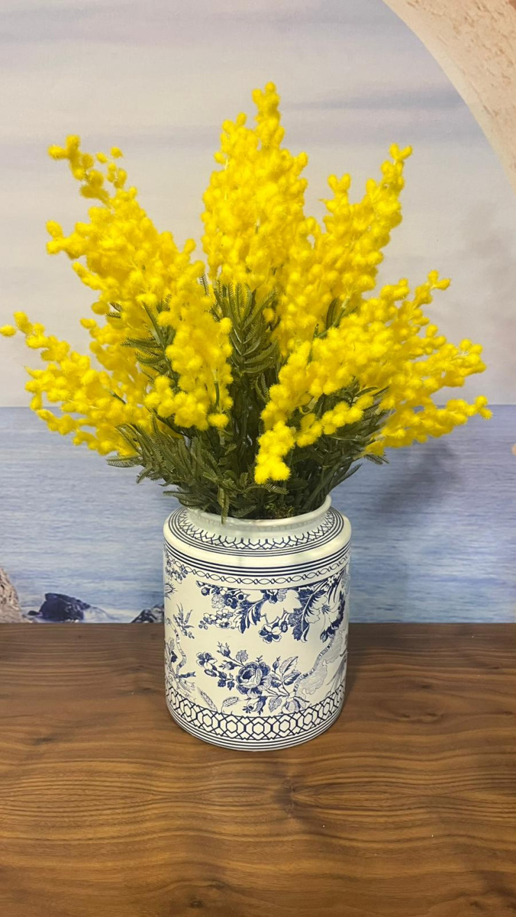 Blue Blanc Vazo Mimoza Çiçeği Aranjman