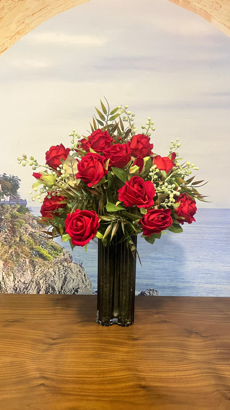 Küçük Siyah Cam Vazo Kırmızı Gül Aranjman