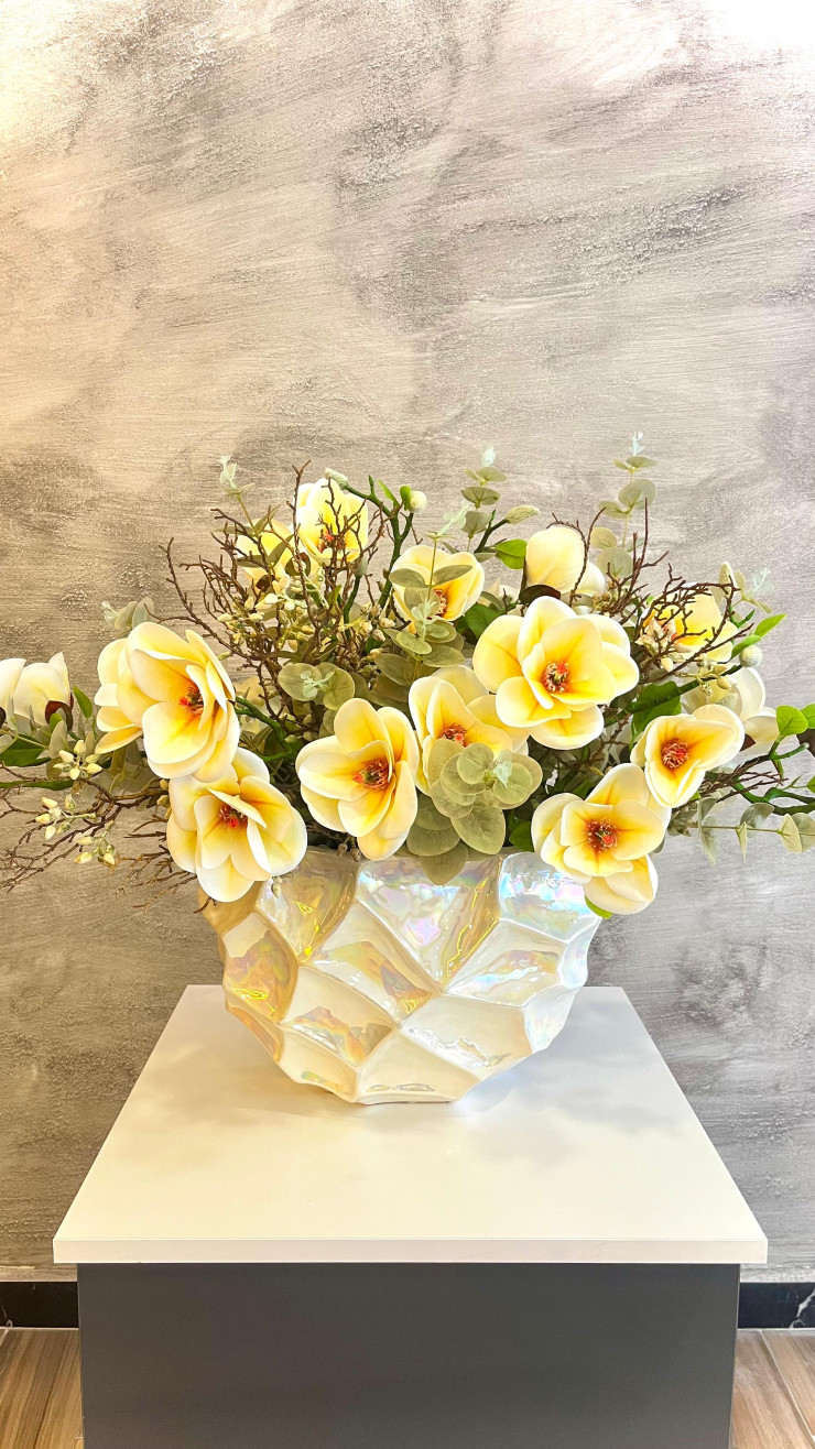 Krem Cam Vazoda Sarı Manolya Aranjman
