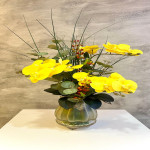 Mavi Cam Vazoda Sarı Orkide Aranjmanı